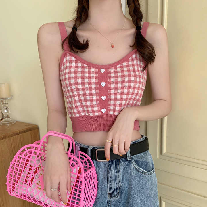Wholesale 2022 Wholesale Women Summer Plaid Knit Camisole Vest Girl Sexy Short Tank Tops Sleeveless Bottom Knitwear T Shirt Casual Vest From M Alibaba Com